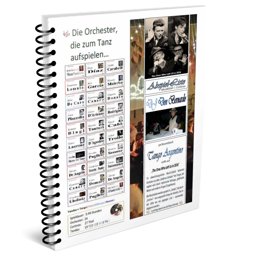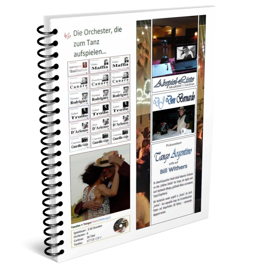 Das ideale Nachschlagewerk zum Erstellen einer perfekten Abspiel-Liste für Deine Tango Veranstaltung. Die schönsten Musikstücke des Tango Argentino zum Tanzen auf einen Blick. Jetzt auch zum Anhören der ausgewählten Songtitel.
