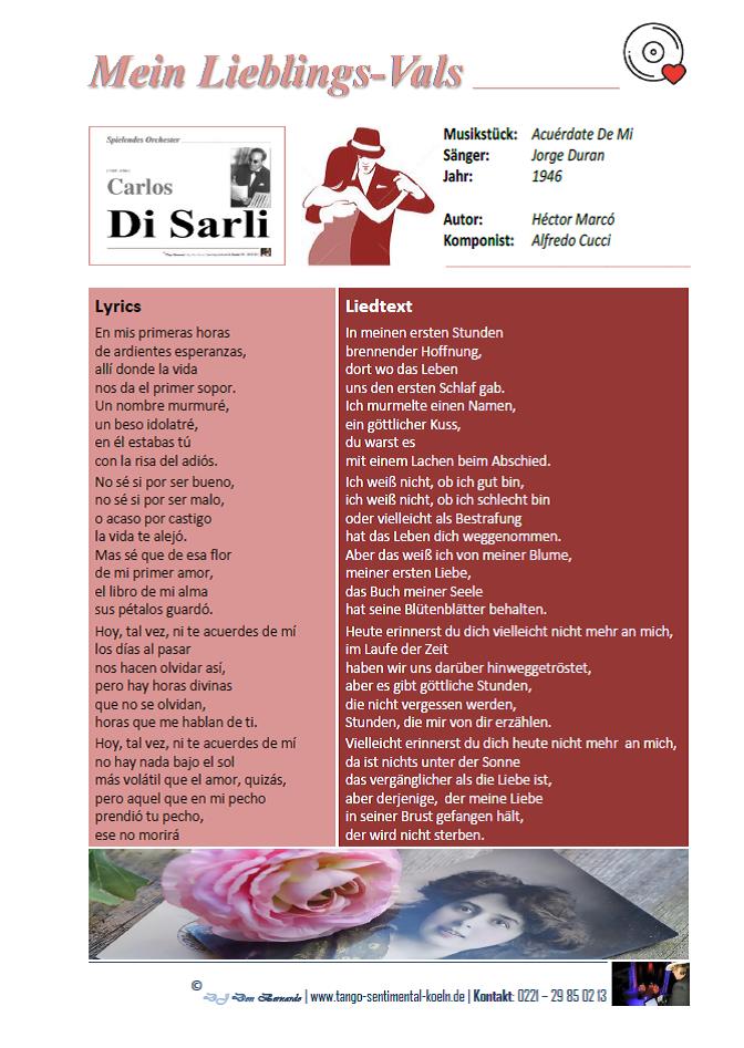 - 28 Tango-Liedtexte – Gesungene Phrasen ins Deutsche übersetzt.