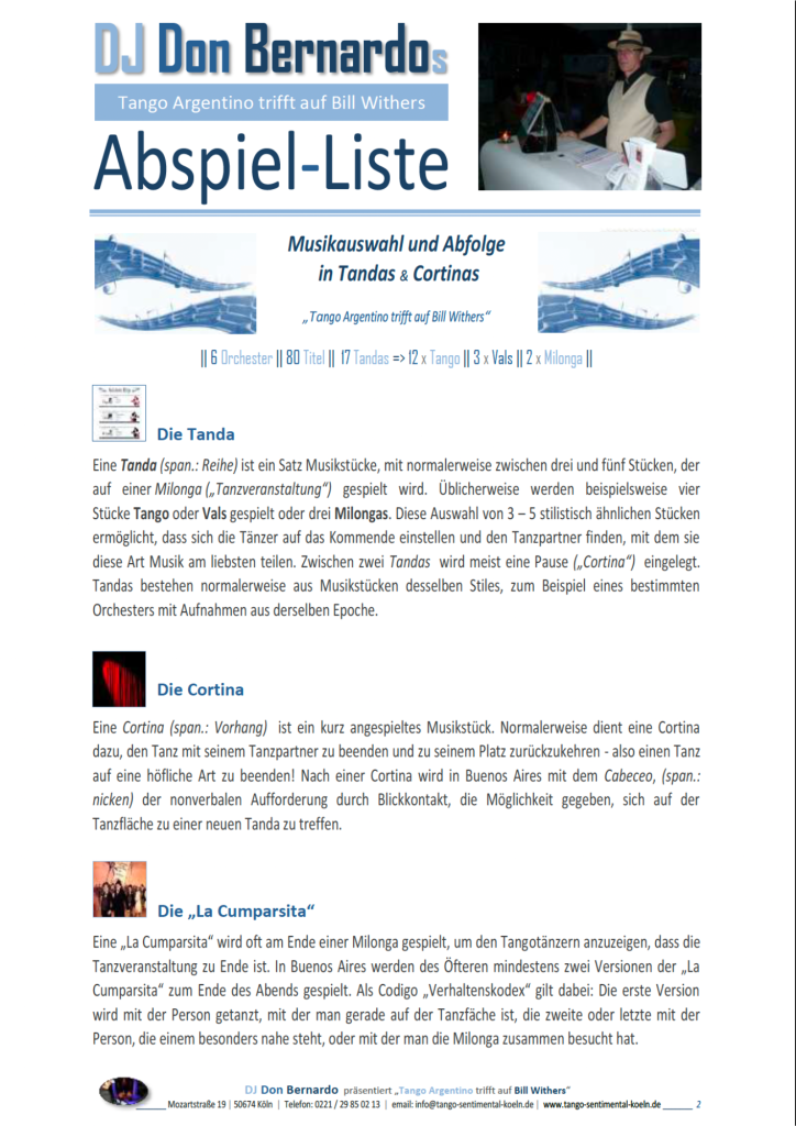 22 Tandas mit 15 x Tango | 4 x Vals | 3 x Milonga